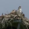 Newly rebuilt in 2018; nest built between two metal utility poles opposite nest 2013 (The monitor has named them Spark (m) and Dixie (f.)